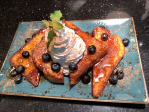 Brioche Bread, Blueberries, Pistachio Sauce, Mascarpone Cream Cheese